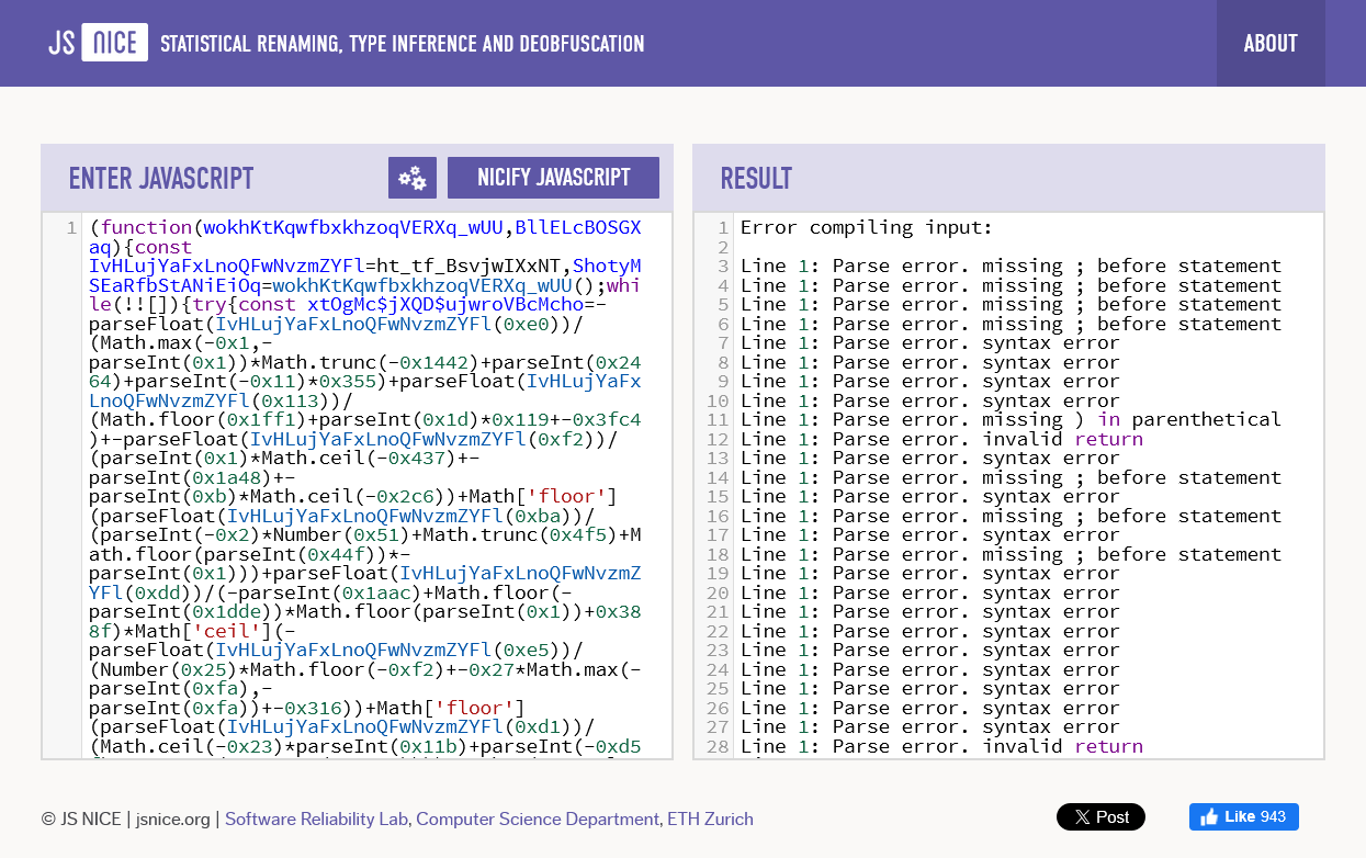 So, what does it do? JS Nice is, unfortunately, not much help this time, which means that a bit of manual reverse engineering will be required.